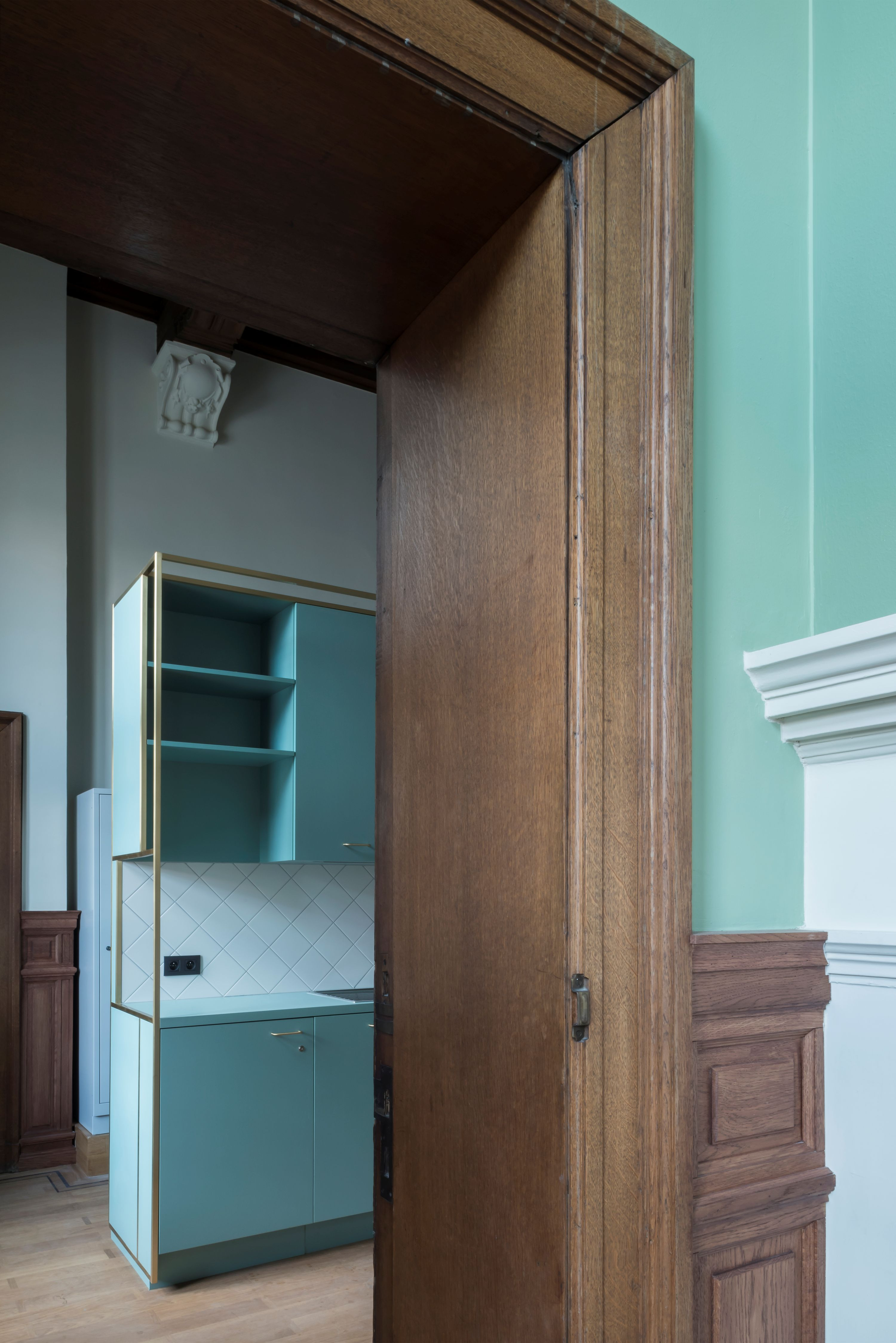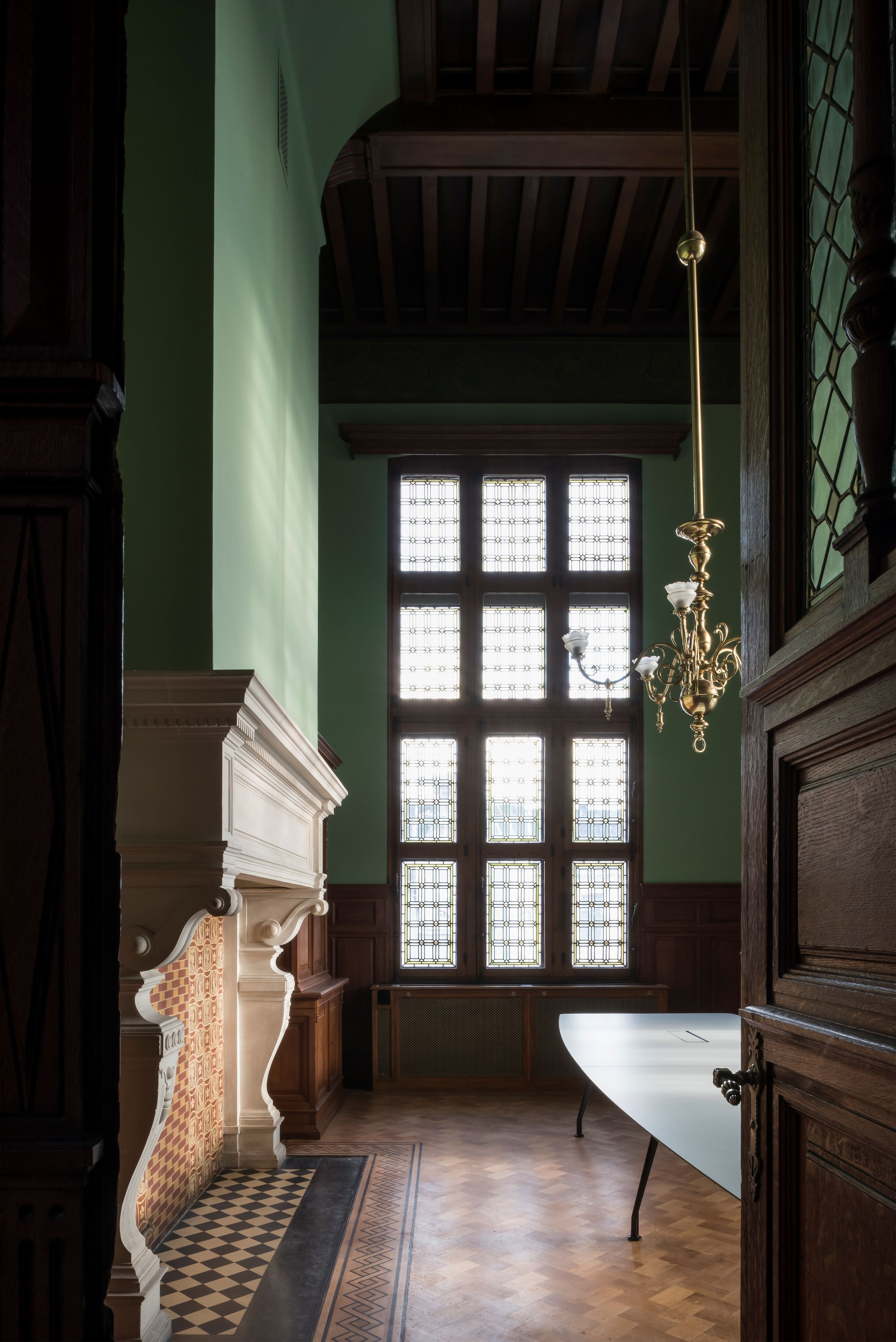 Het voormalig Gemeentehuis, een waar icoon voor het district, dateert van 1889 en staat gecatalogeerd als eerste beschermd monument van Borgerhout. De hoofdopdracht omvatte de bijkomende integratie van de loketwerking, naast het vrijetijdsloket en de districtswerking die reeds in het gebouw aanwezig waren. De loketten werden op de gelijkvloerse verdieping geïntegreerd en kregen hun eigen toegang aan de oostelijke zijgevel. Dit bleek uiteindelijk de enigste haalbare oplossing, rekening houdend met de te bereiken toegankelijkheid alsook de gevraagde scheiding van bezoekersstromen tussen de loketwerking enerzijds en de meer ceremoniële functies anderzijds. Voor de lokettenzaal werd een totaalarchitectuur uitgewerkt die ondanks de hedendaagse vormgeving naadloos aansluit bij de bestaande historisch waardevolle interieurs. Bij de gedetailleerde uitwerking van de diverse interieurelementen werden een aantal linken gelegd naar bestaande uitvoeringsdetails, kleurstellingen en materiaalkeuzes die reeds in het gebouw aanwezig zijn. In nauw overleg met Monumentenzorg werd ook beslist om de monumentale bordestrap aan de achterzijde van het gebouw door te trekken vanaf het Schoon Verdiep tot op het gelijkvloerse ‘plintniveau’.