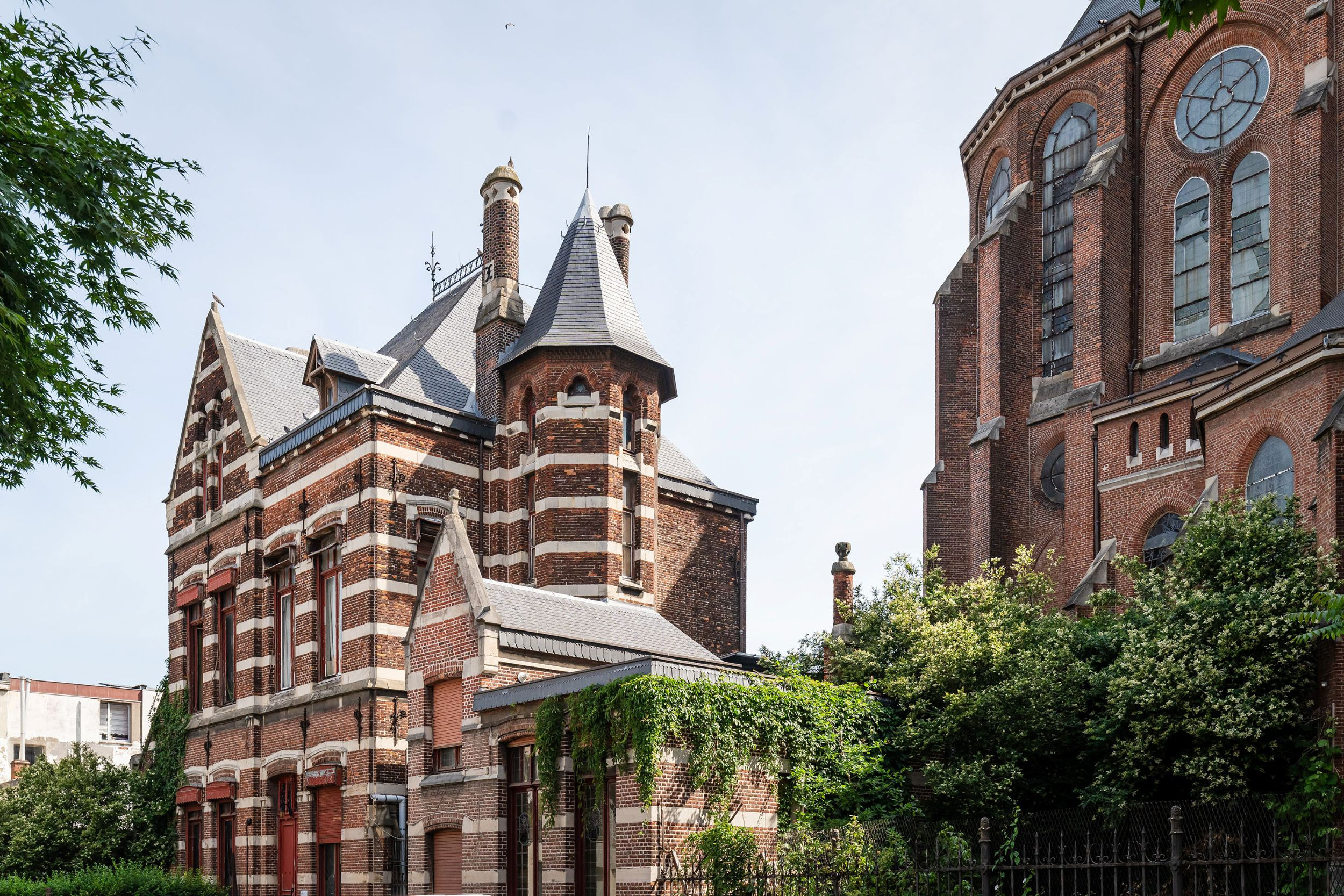 De Sint-Amanduskerk is een vrijstaande, neogotische driebeukige kruisbasiliek met toren, ontworpen door Louis Baeckelmans (1866) en gebouwd tussen 1869 en 1874. Het monumentale geheel omvat ook een pastorie en sacristie, verbonden met de kerk, en een volledig onderkelderd volume met gemetselde gewelven. Door het teruglopende aantal kerkgangers werd onderzocht hoe de site opnieuw een centrale rol kan spelen in de diverse buurt. Er werd een project uitgewerkt met een nevenbestemming, waarbij een demontabele opdeling flexibel ruimtegebruik mogelijk maakt. Daarnaast zijn een verbindingstrap naar de kelder, een sanitair blok, een herwerkte inkom en een lift voorzien om de toegankelijkheid te verbeteren. Het project kreeg steun van Kerkplus Provincie Antwerpen.Rond de kerk wordt ingezet op vergroening en het verbinden van de omliggende tuinen tot een doorwaadbare passage, met ruimte voor de buurt via de herbestemming van het archiefgebouw en een uitbreiding van de pastoriekeuken tot buurtkeuken.