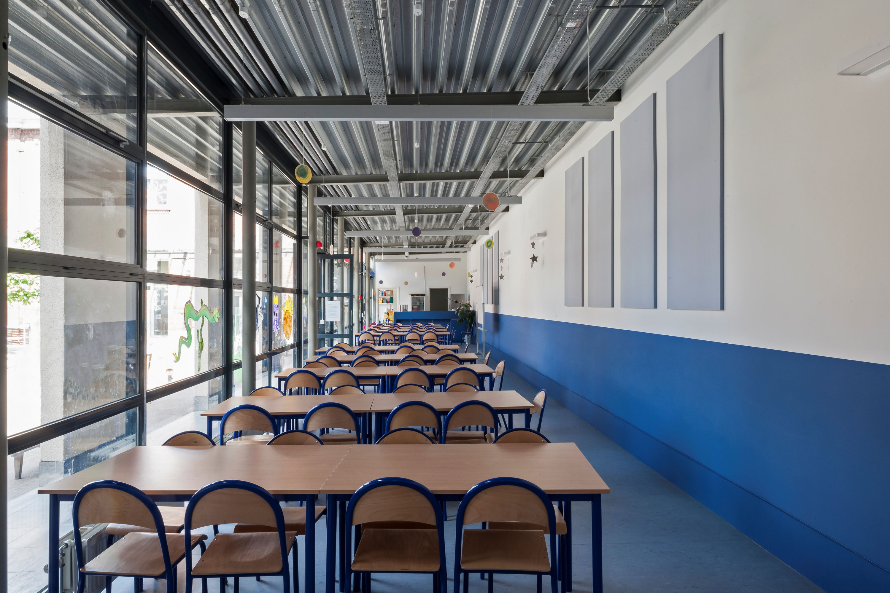 De uitdaging aan dit renovatieproject was om de werken zo te organiseren dat deze een minimale hinder geeft op de werking van de school. Dit werd gerealiseerd door de werken op te splitsen en de werfinrichting daarop aan te passen.