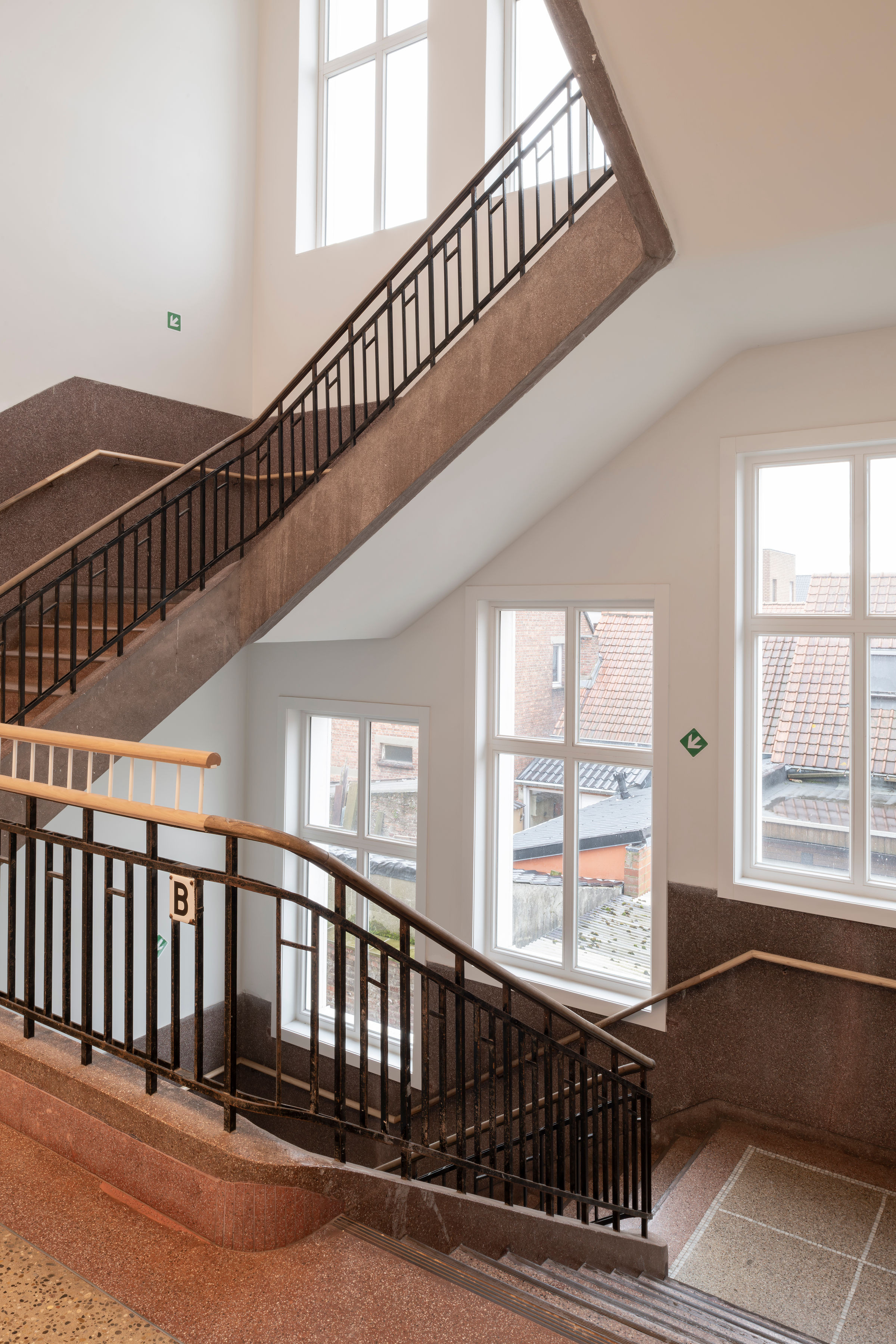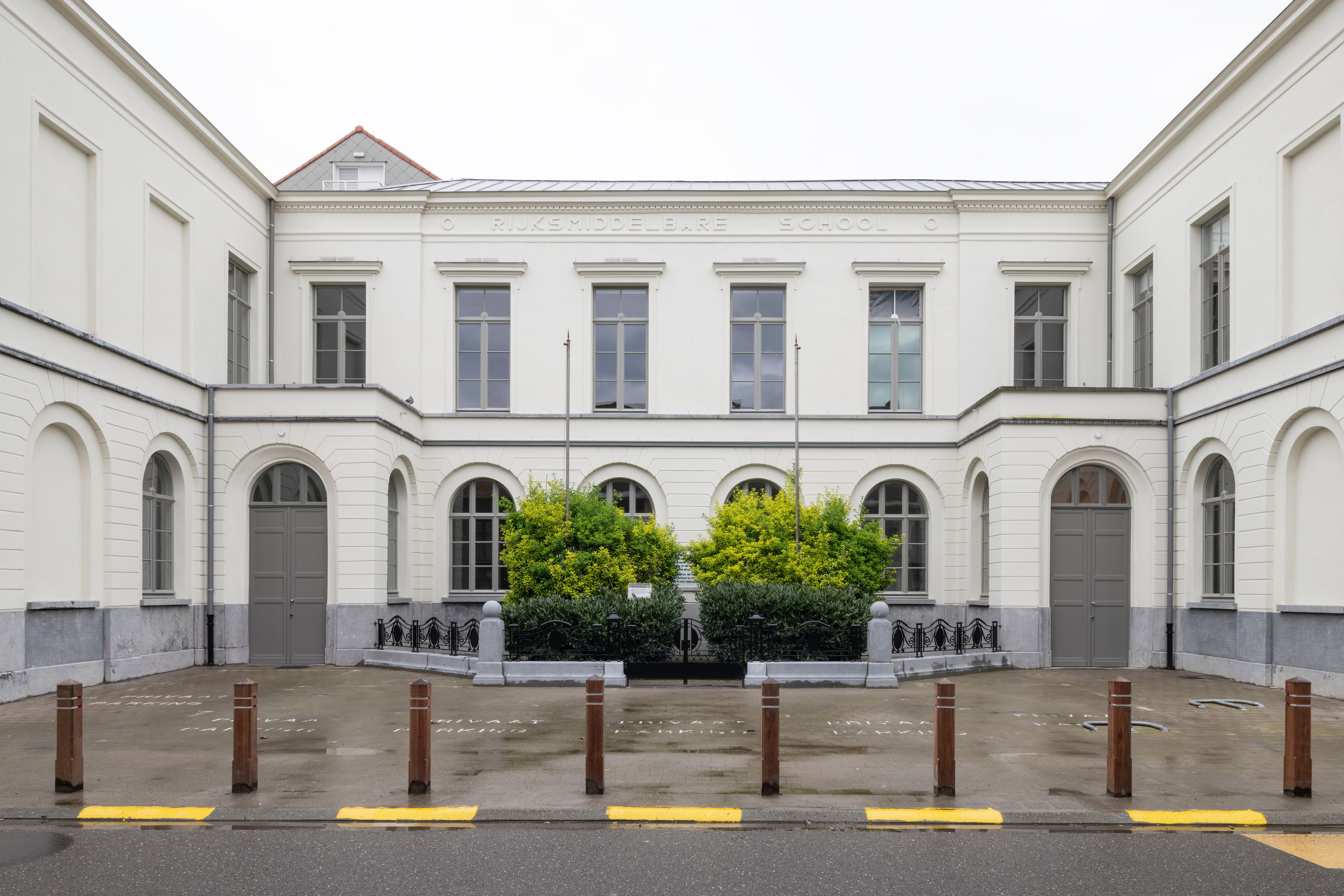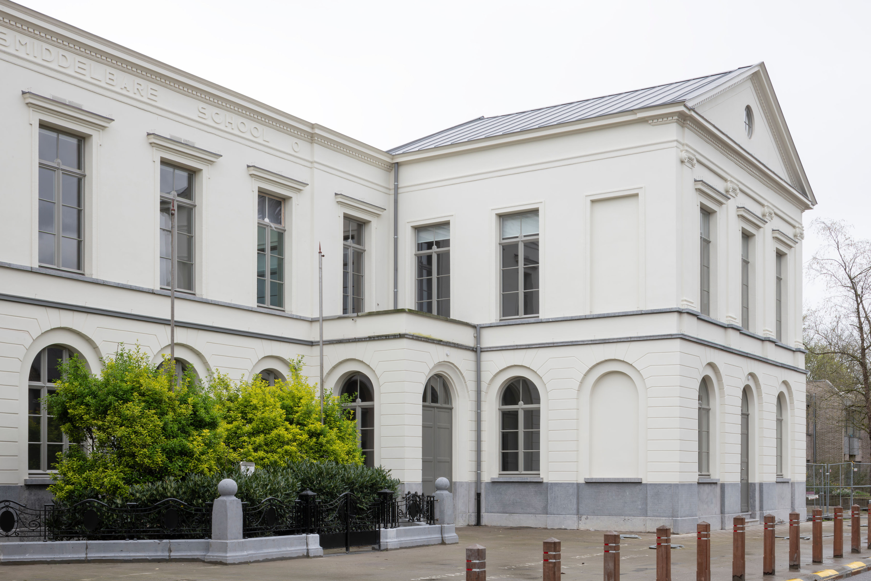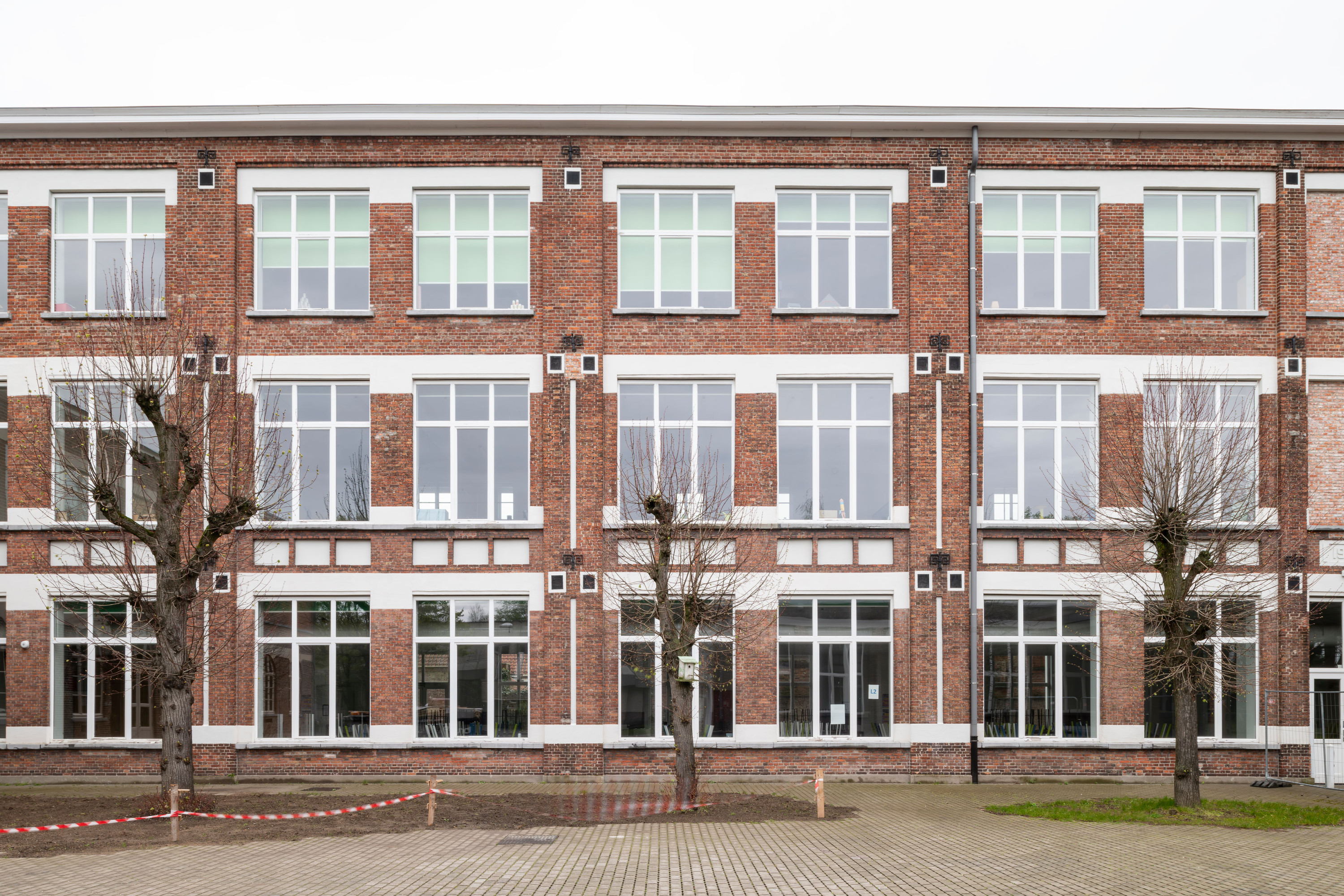 De scholencampus spreidt zich uit over een groot terrein dat aan de westzijde grenst aan de Leegstraat en aan de oostzijde aan de De Meyerstraat. De site bestaat uit een amalgaam van gebouwen, paviljoenen, containers en diverse verspreide speelplaatsen. In samenwerking met Made architects werd een masterplan uitgewerkt zodat het project kon worden ingebed in een langetermijnvisie. Het streefdoel bestaat er in de leesbaarheid van het aangenomen deelgebied terug te verhogen met groot respect voor het aanwezige patrimonium maar ook de groene ruimte. De uiteindelijke architectuuropdracht behelst de renovatie en restauratie van het bestaande historische patrimonium en de integratie van de refter, keuken, lagere school, administratie, directie, sportzaal en polyvalente ruimte. Het essentiële uitgangspunt van de restauratie is de 19de eeuwse uitstraling van het neoclassicistisch monument aan te zuiveren en terug te laten functioneren als het gelaat en uithangbord van de school.